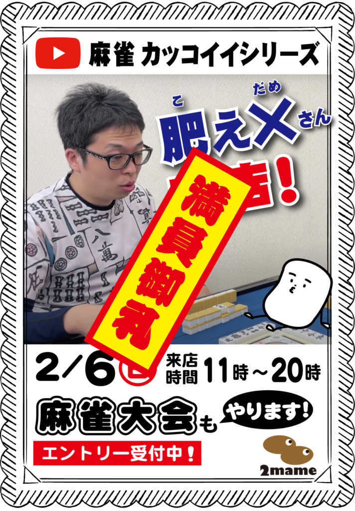 大人気!麻雀ユーチューバー「麻雀カッコイイシリーズ」肥え×さんと麻雀大会 満員御礼にて無事終了♬ その時の様子をもーすぐアップしますので少々お待ち下さい(^_-)